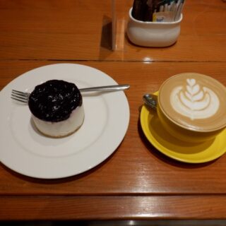 タメルのヒマラヤンジャバコーヒーでブルーベリーチーズケーキを食べる