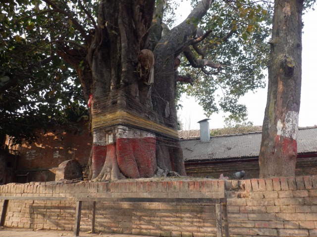 このような糸がまかれた木は、インドのコルカタでも見かけた。
