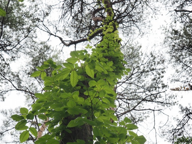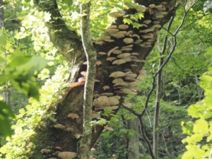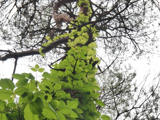 木を取り巻く葉っぱが、何だかツキヨダケでも生えているように見える。