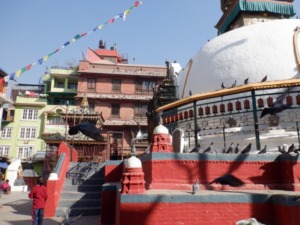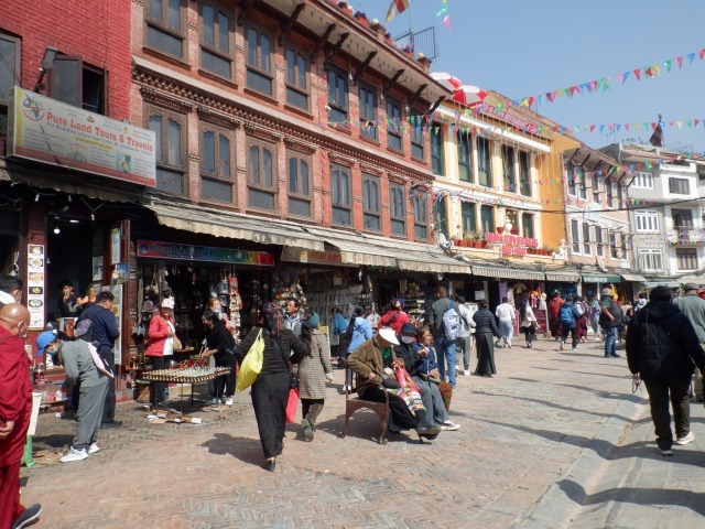 このボーダナートのストゥーパは、周りを飲食店や土産物屋に取り囲まれている。