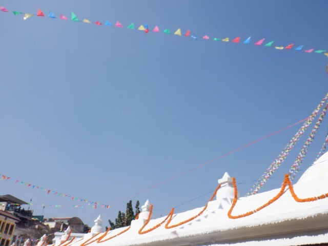 周りの人たちと一緒に、ストゥーパの周りをグルグルと何周もした。