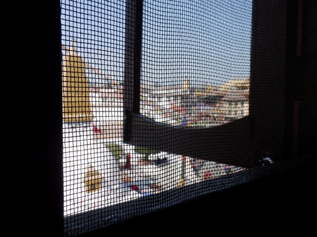 網戸が貼られているが、ボーダナート周辺が良く見える。