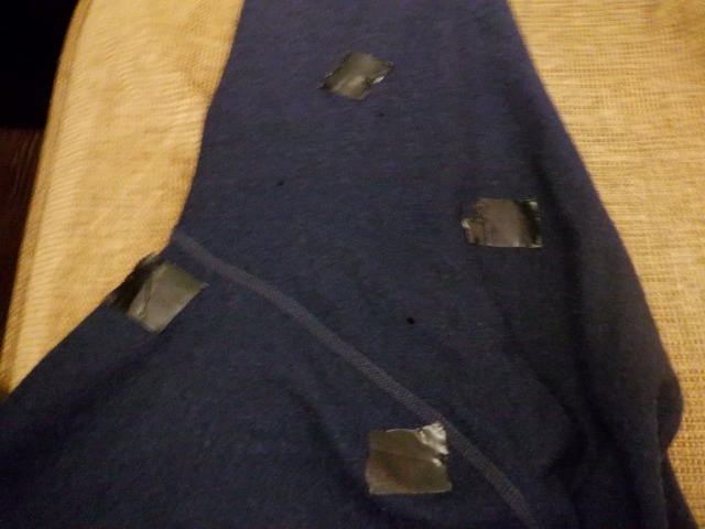 長袖はこれ一枚しかなかったので、仕方なくガムテープを張ってやり過ごしました。