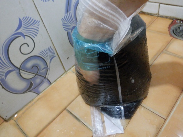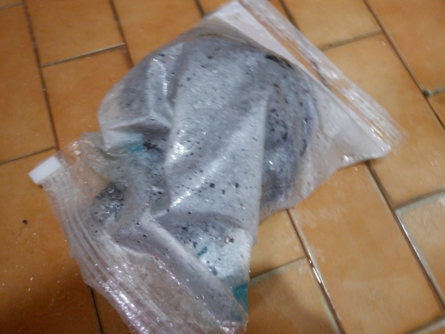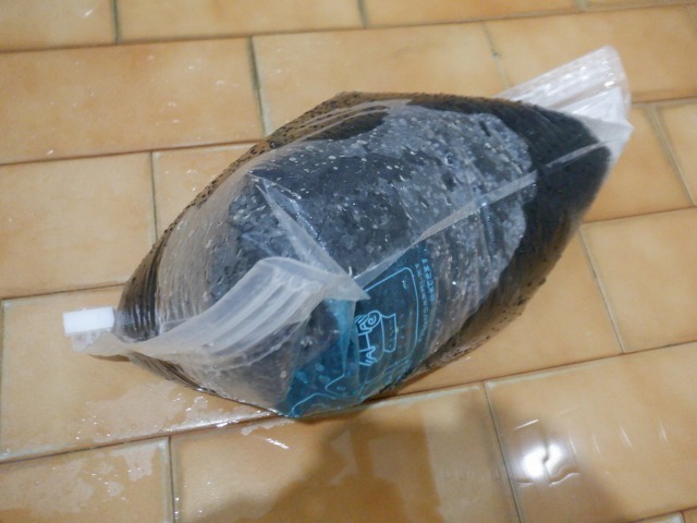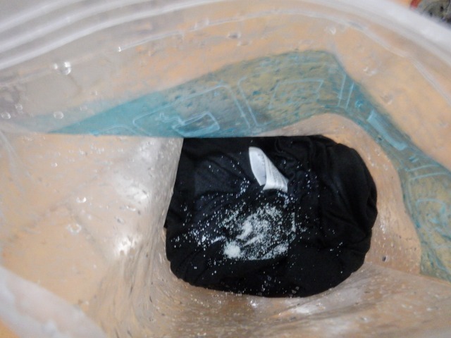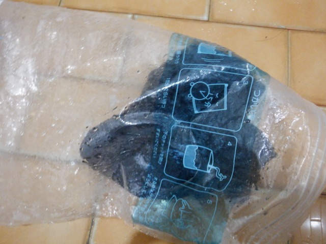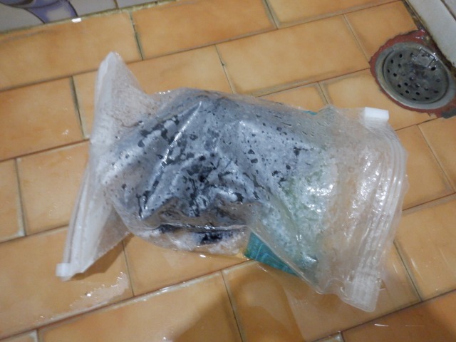 そこに水を入れ、袋の上から少し揉み洗いします。