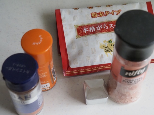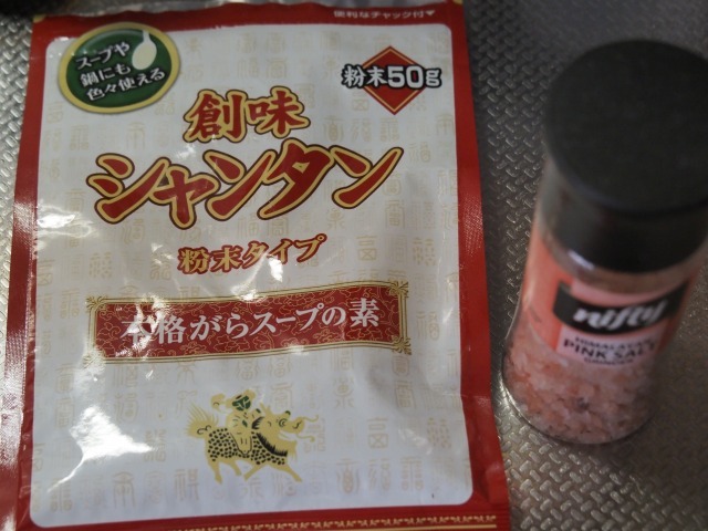 味の決め手となるのが、塩と鶏がらスープの素です。