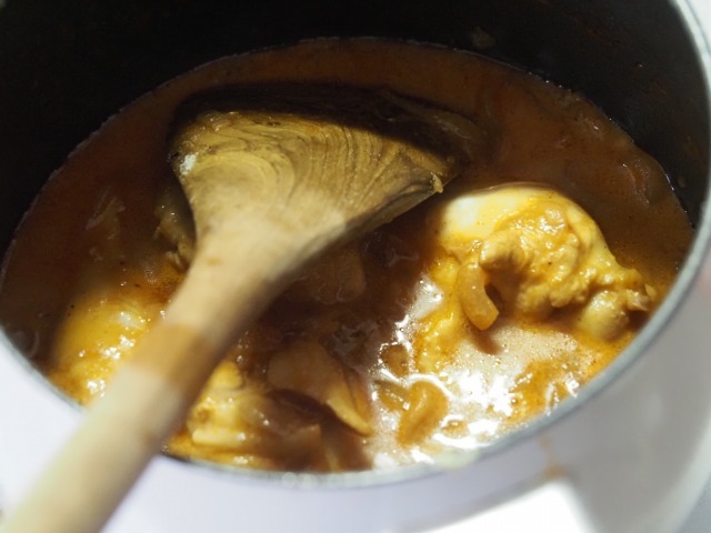 ターメリックやカイエンペッパーなども入れて煮込んでいきましょう。