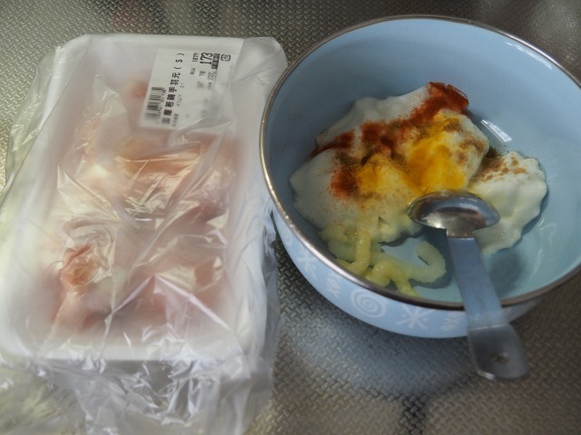 上の画像では、パプリカパウダーや、チューブのしょうがとにんにくも混ぜています。