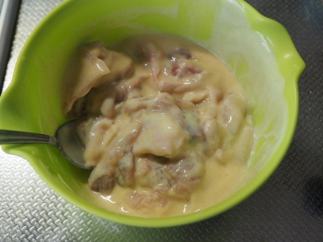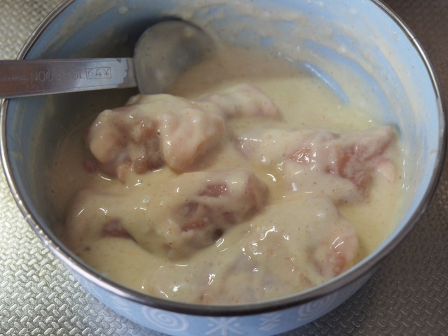 ヨーグルトは多めで大丈夫ですが、ヨーグルトがない場合は、肉類にスパイスだけまぶしておきます。