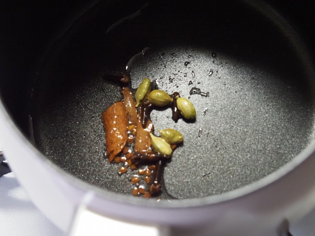 作り始めに油を熱するとき、一緒にホールスパイスをいくつか炒めると、良い香りが出ます。