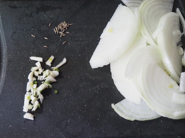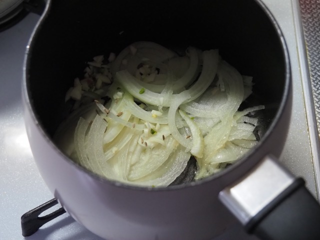 タマネギとクミンの他に、にんにくやしょうがをみじん切りにして入れるのもお勧めです。