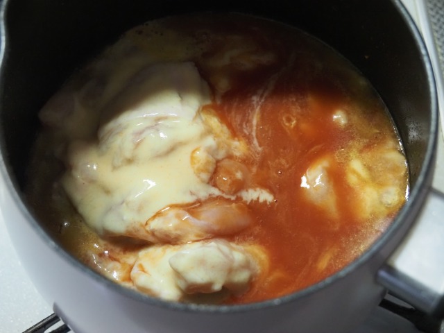 ケチャップでも代用できますが、味に酢の酸味が出るので、仕上がりが少し変わってきます。
