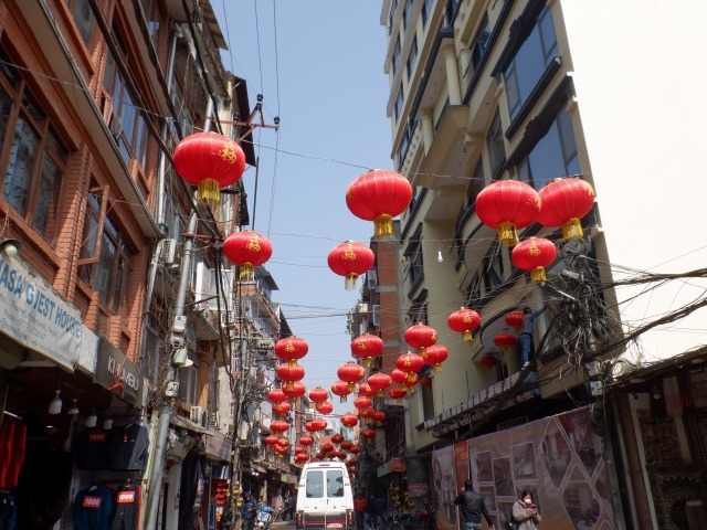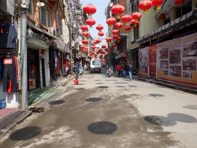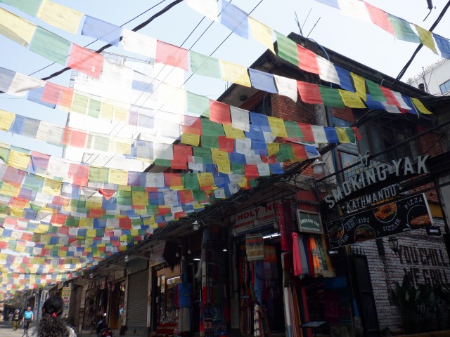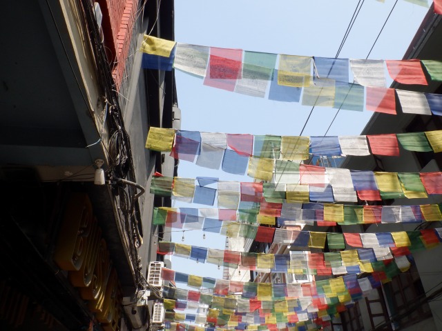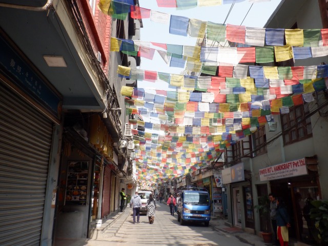 この通りは上にタルチョがはためき、お祭りのようだ。