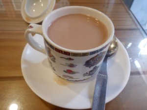 メニューを見つつ、チベットティーとノンベジのダルバート(Nepali set meal)を注文。
