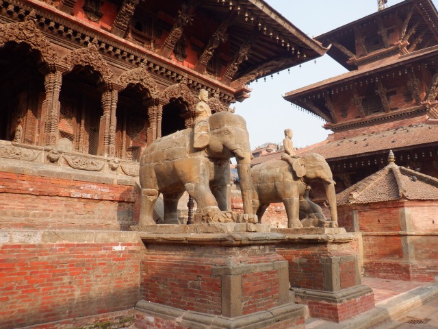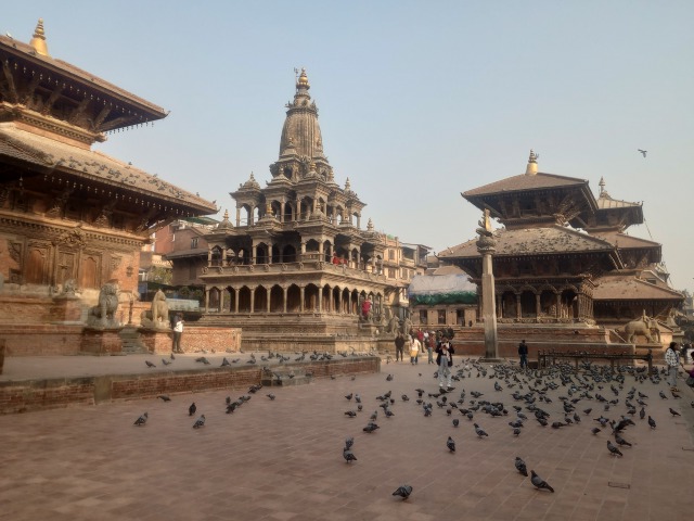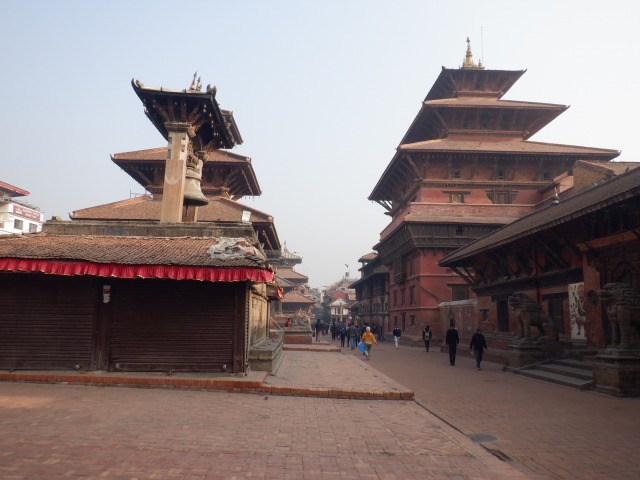 パタンのダルバール広場は、ほぼ一直線に見どころが集中している。
