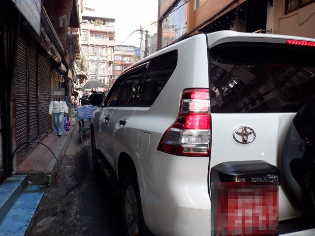 タメルを歩いていると、車やバイクが詰まっている光景によく出くわす。