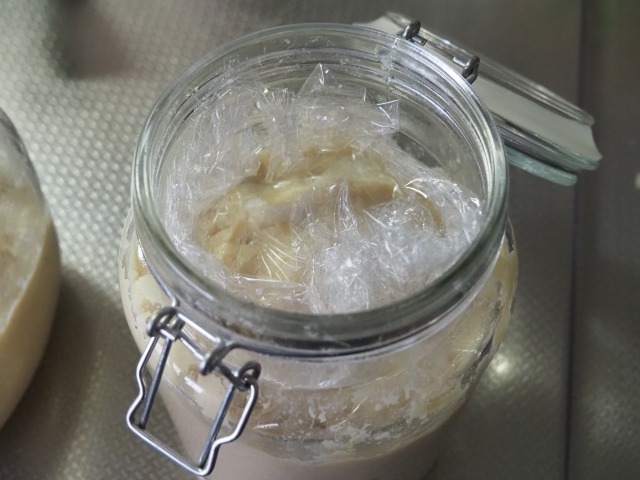 最後は重しをした方が良いらしいが、無いので、ラップを上に敷いておくことに。