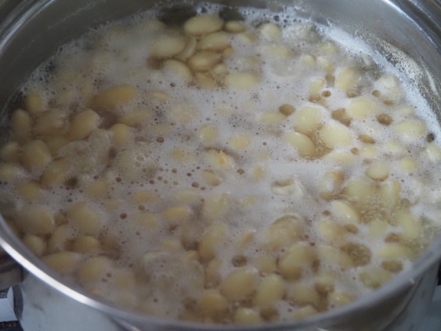 大豆が柔らかくなるまで結構時間がかかり、煮ている最中にも水分がなくなっていく。