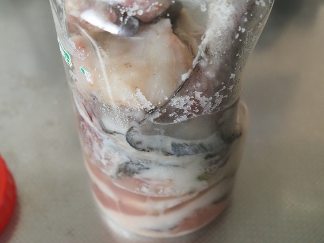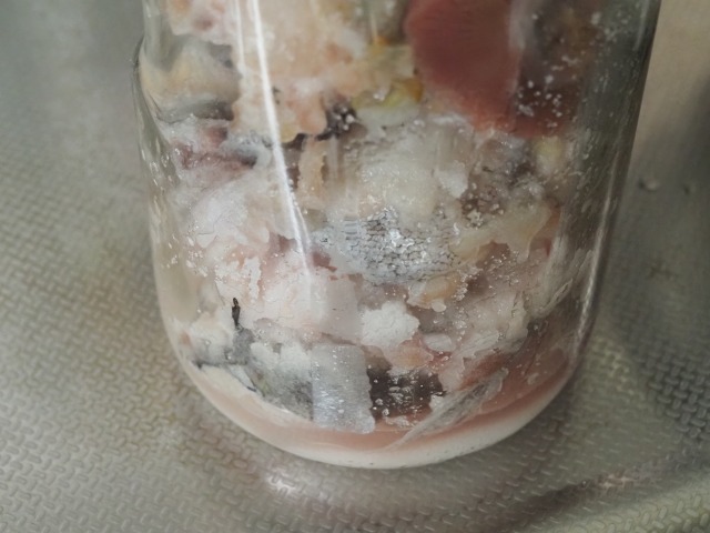 このまま消化酵素などで身が消化されていき、旨味成分が水に溶けだしていくのだろう。