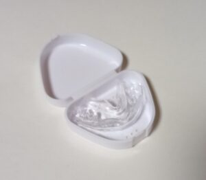 歯医者でマウスピースを作ってもらい、寝る時に装着することに。