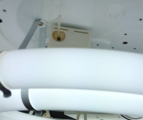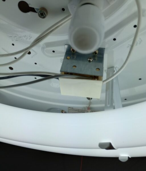 カバーを外して見ると、下の画像の、紐がつながっている四角いボックス内にスイッチがあるようだ。