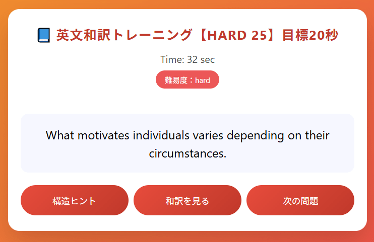 目標は、hardならば、毎回20秒で全問正解できるようになればgoodです。