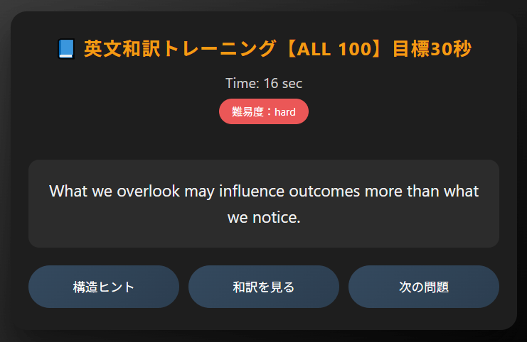 このアプリは、大学入学共通テストの英語で「時間が足りない」を克服するための特訓ツールです。